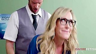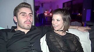 Brunette MILF's sloppy blowjob and intense handjob on POV in a steamy bedroom scene