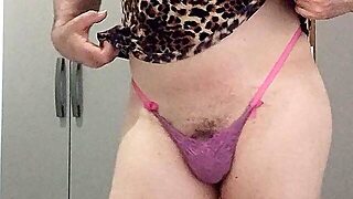 Trans female Crossdresser in tries to cum on sextoy then sucks it like the horny mother i'd like to fuck bouncing her butt and grinding on a dick