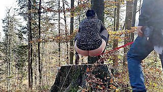 Desperate to Pee, She Has to Pee with Leashed Butt Outdoor