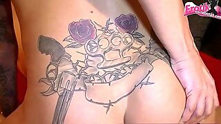 Skinny babe Emma with small tits gets fucked on the table in a sensual massage scene.