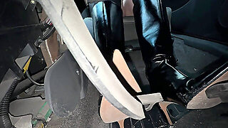Hot blonde bombshell with massive boobs in pantyhose and stockings gets her toy out
