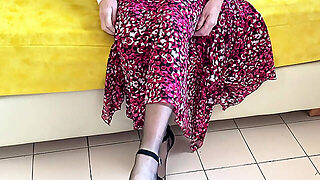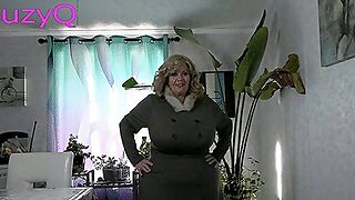 Ash-blonde cougar finger pounds pussy in vintage girdle sheer nylon
